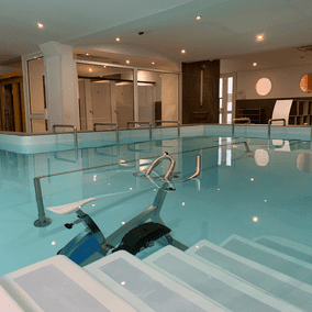 Nous vous proposons des séances de rééducation, d'aquabike, de vélo elliptique, de sauna, de bains bouillonnants, de couloir de jets à haute pression, ou encore, une baignoire de cryothérapie.
